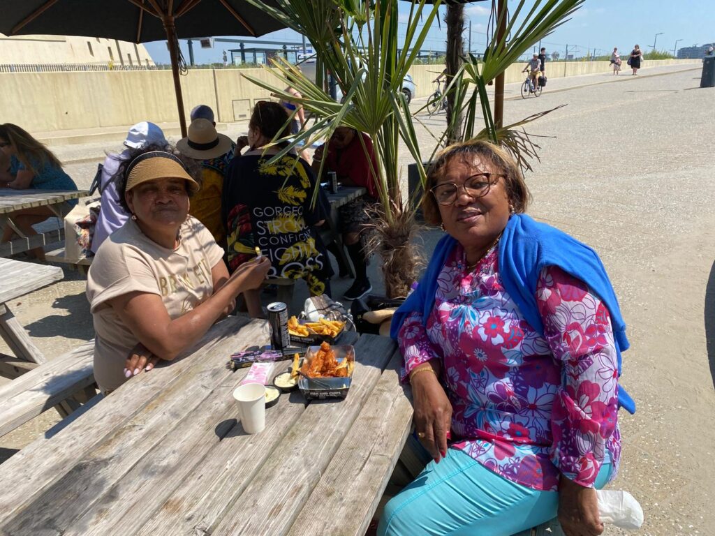 Op het strand aangekomen hebben we eerst gezamenlijk een broodje gegeten en wat gedronken en daarna geïnventariseerd wat iedereen wilde doen. Een aantal wilde gezellig over het strand banjeren, een aantal lekker in het zonnetje en weer anderen in de koelte van de schaduw. De vrijwilligers verspreidden zich over de groepjes en we spraken af om op een bepaalde tijd weer te verzamelen om een visje te gaan eten met de nodige dubbelzinnige opmerkingen.